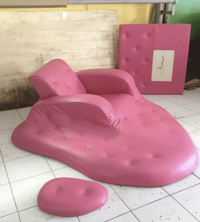 Exposé dans la récente manifestation Global Caribbean IV, une œuvre d’Eddy Firmin dit Ano critique la structuration du milieu artistique, support de la création dans la Caraïbe. L’œuvre d’un rose soutenu ressemble à ce qu’Ano évoque comme un morceau de chewing- gum modelé comme un fauteuil profond, accompagné d’un repose – pied. On peut s’interroger sur sa fonction de siège peu fiable -qui s’affaisse- comme si le mettant à l’épreuve, celui qui chercherait à s’y asseoir allait s’enfoncer dans l’oubli. De plus, ce qui fait fonction de repose – pied est installé à coté du fauteuil comme pour tourner en dérision toute tentative d’y reposer ses pieds fatigués.