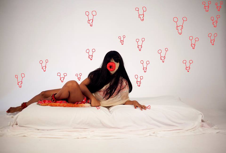 Vagina is more than a work of art, it is a concept. It is a proposition for a study about artistic and aesthetic types of works allowing me to deal with domination in what concerns woman-man relationships. Initially I was projected with this study, through an installation into a bedroom, the typical place or ‘euphemism’ for the violence related to this domination. This installation evolved artistically along the different exhibitions where it was exposed, a gallery (T&T Guadeloupe), a hotel room, (Pool Art Fair, New York), Media platforms (Art Bémao, médiathèque Paul Mado). And so, these exhibitions in Guadeloupe or in New York only shared a few elements that seemed to me strong and essential axes. This study brought me at the same time, through the photographic media to personify this violence through a creature with an oversized red mouth. Yes, all my work is motivated by reflections around the vagina. I have the feeling that, right in front of me is a huge white book and that I have used just a few pages.
