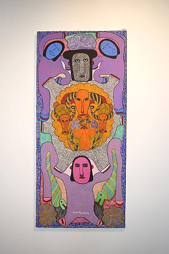 Myrlande Constant, Dubreus Lherisson, David Boyer d’Haïti convoquent les loas et revisitent les bannières vaudou avec des paillettes, des coquillages de vieilles poupées tandis que des feutres de Guyodo, artiste de la Grand Rue, émerge un dessin expressif et comme halluciné.