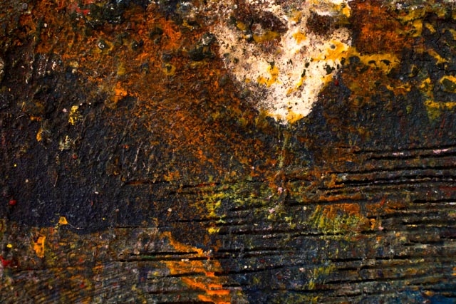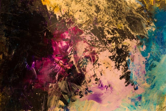 There is the temptation to make the obvious connection between Belgrave’s photographs and Pollock’s paintings; both are raw, paint-focused and abstracted. Pollock’s need to have a paint splat ‘here’ or to place a drip ‘just so’ is mirrored in the way Belgrave chose to capture ‘this’ particular overlapping of paint or ‘that’ close-up of a palette. But Pollock took on the mammoth task of redefining the very notion of painting with his deconstruction of one its basic elements, the line. Belgrave’s pieces seem more spontaneous than preconceived. His intention mainly to capture rather than construct.