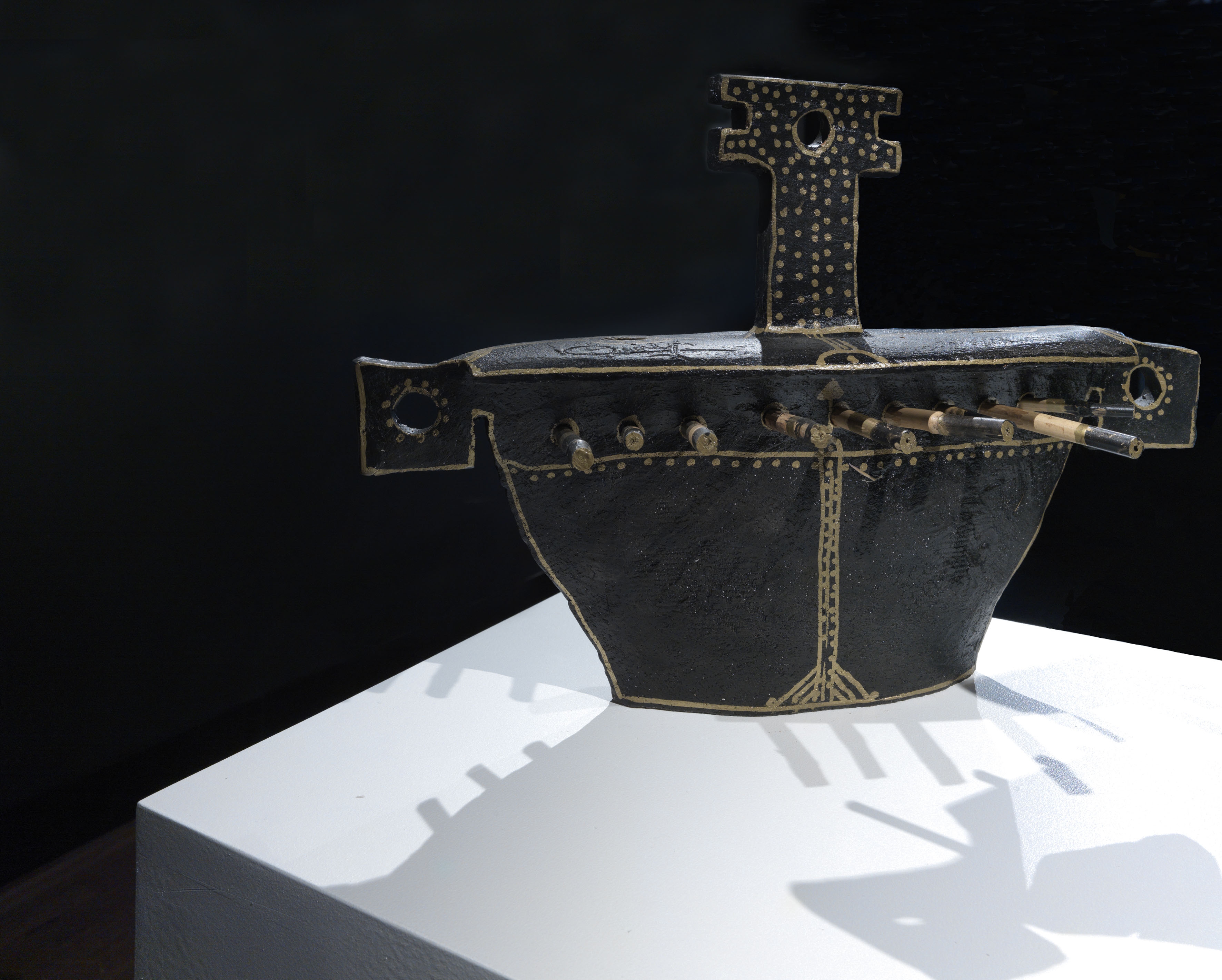 From earthenware to metal, from the object to the monument, there have been countless tasks in a warehouse in François; such as modifying the size, defining the adequate three hundred by thirty centimeters module, overcoming the technical difficulties with Michel Pétris’s assistance, a designer and sculptor specializing on metal who masters every technique in welding. Then there was the welding and fitting the rivets to the boat.