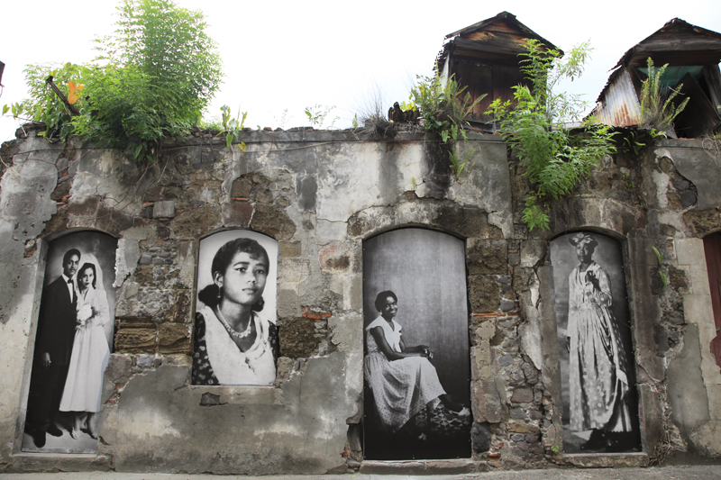 The exhibition of iconic female images or “totems” created by Anabell Guerrero during her artist residency in Saint Pierre is a tribute to the women of Martinique’s former capital, which was destroyed by the eruption of the Mount Pelée volcano on May 8, 1902.The exhibition, “Les Pierrotines d’Anabell Guerrero,”also features an array of photographs from family albums and images selected by city residents during a photographic workshop entitled “Remembrance.”