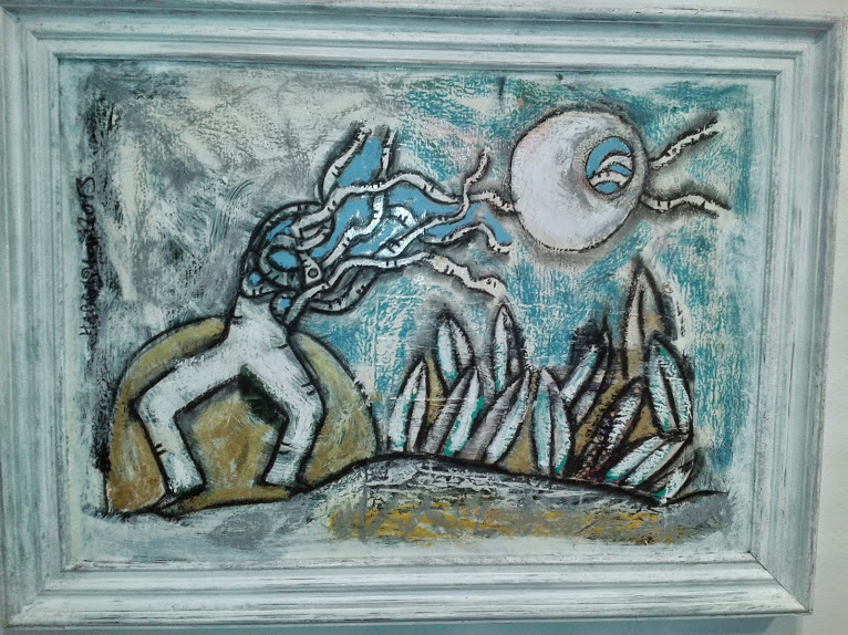 L’éternel retour convient parfaitement à son univers primitif. La vie imite la vie dans la ronde des signes. Les porteurs de mots tiennent la main des lianes-tamarin des années 90. Roseau qui se plie mais ne rompt pas, signe d’une culture martiniquaise en expansion, cette liane-là, multipliée, repensée, emmêlée à l’infini, se transforme en un dédale de mots, un nouveau symbole non répertorié : le porteur de mots, une sorte de sherpa débordé par l’embrouillamini de mots qui envahissent sa tête.