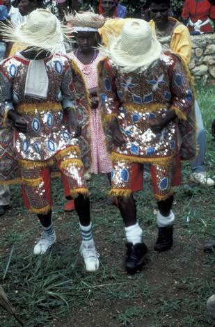 Ils font partie d’une chaine de dévotions où l’on trouve des pakets congo et des chasubles portées par les dignitaires lors des défilés Rara, manifestations rurales qui se déroulent pendant le carême et culminent à la semaine sainte l’Église Catholique.
