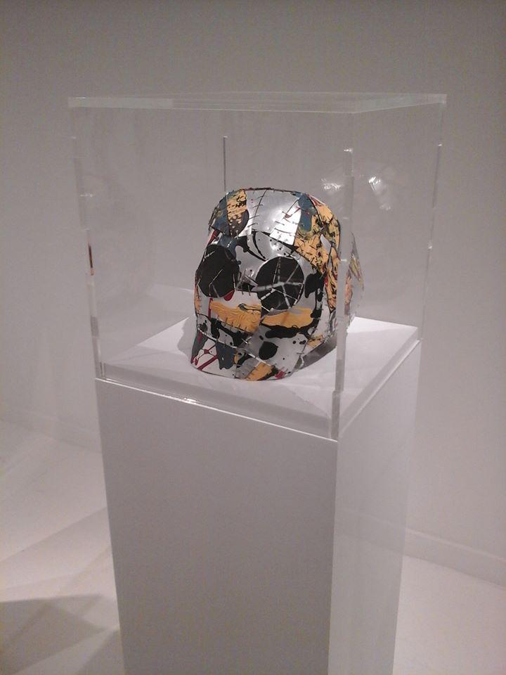 « Memento mori », comme une invitation à jouir de la vie avant qu’il ne soit trop tard ? Scarlett Jesus y voit une métaphore de la relation de l’art contemporain au monde. L’artiste lui évoque la relation centre/périphérie que le matériau de ses pièces lui permet d’aborder. En effet, ses vanités sont formées par des plaques off-set du journal France-Antilles couturées entre elles par des agrafes. Si les couleurs ont fait disparaître le texte à l’extérieur des pièces, à intérieur on peut encore lire le journal. Le duo centre-périphérie est un peu le sujet de l’exposition. Négropolis, ville nègre ou nègre des villes, négropolitain, comme Hunt qui est né en 1975 en banlieue strasbourgeoise d’un père guadeloupéen et d’une mère réunionnaise.