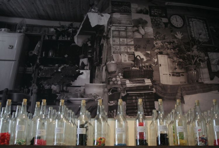 Entre – vues – Cynthia Phibel installation photographie numérique noir et blanc et objets divers -2009
