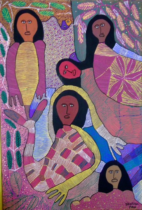 Il peut être intéressant à souligner que dans d’autres religions de la transe, on retrouve ce goût pour l’effet « paillette » comme s’il y avait une corrélation entre cette perception visionnaire de l’éclat et du fractionnement, véhiculée par la transe et sa manifestation plastique. Ainsi, ce tableau d’un artiste Gnawa d’Essaouira au Maroc, peut-il utiliser le même ‘pointillisme’ exactement comme le peintre haïtien Dieuseul Paul. (Fig. 7 et 8). La corrélation m’a toujours semblé à la fois énigmatique et suggestive ; comme si la vision de cet ailleurs induit par la transe était d’emblée fractionnée, déstructurée, métamorphosée en de multiples points, source d’éclat et d’éblouissement merveilleux.