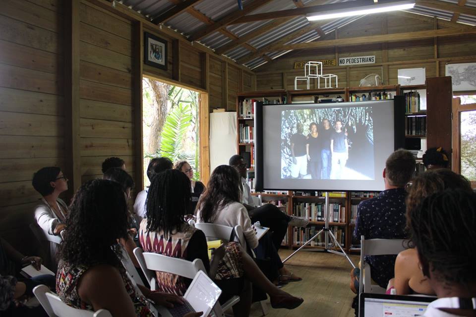 Annalee Davis, Fondatrice et Directrice de The Fresh Milk Art Platform (Barbados); Holly Bynoe, Co-fondatrice et Rédactrice en chef de la revue ARC Magazine (St. Vincent & the Grenadines); Tobias Ostrander, Chef Curator, et Maria Elena Ortiz, Assistant Chef Curator, Pérez Art Museum Miami (USA); Mario A. Caro, Président de Res Artis (Amsterdam); David Codling, Directeur Arts, Americas, British Council (Colombia); Natalie Urquhart, Directrice du National Gallery of the Cayman Islands; Amanda Coulson, Directrice de VOLTA NY art fair (USA) and Directrice du National Art Gallery of the Bahamas; Deborah Anzinger, Artiste and Directrice de NLS basé à Kingston (Jamaica); Nicholas Laughlin, Co-fondateur de Alice Yard basé à Trinidad & Tobago; David Bade &Tirzo Martha, Co-directeurs du Instituto Buena Bista (Curaçao); Elvis López, Directeur de Ateliers ‘89 (Aruba); Remco De Blaaij, Curator au Centre for Contemporary Art (Glasgow); Max Slaven & Ellie Royle, Co-Directeurs de David Dale Gallery & Studios (Glasgow); Jessica Carden, Co-fondatrice de Mother Tongue (Glasgow); Solange Farkas, Directrice de Videobrasil (Brazil); N’Goné Fall, Independent Curator and Co-Fondatrice de GawLab (Senegal); Raquel Paiewonsky, Co-fondatrice du collectif d’artistes Quintapata (Dominican Republic); Kira Simon-Kennedy, Co-fondatrice de China Residencies (USA/China); Malaika Brooks-Smith Lowe, Co-fondatrice et Directrice de Groundation Grenada (Grenada), Marsha Pearce, Senior Editor de la revue ARC Magazine (Trinidad); Caryl* Ivrisse Crochemar, Fondateur et Directeur de 14°N 61°W (Martinique). Et de la Barbade, les participants inclurent Janice Whittle, curator du Queens Park Gallery et representante du National Cultural Foundation; Therese Hadchity, Historienne de l’Art; Joscelyn Gardner, Artiste; Llanor Alleyne, Artiste et écrivain; Katherine Kennedy, Artiste et Assistante des Directeurs de ARC Magazine et Fresh Milk; Versia Harris, Artiste et volontaire à Fresh Milk; Sammy Davis, volontaire à Fresh Milk et Tonika Sealy, Productrice culturelle indépendente