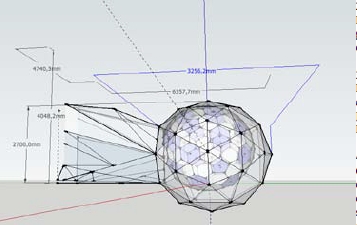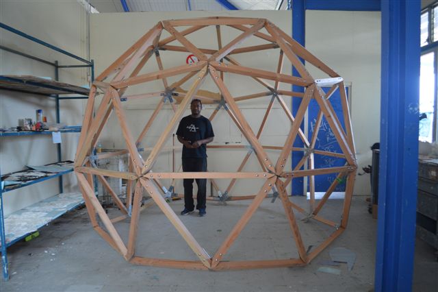 Un premier dôme géodésique en bois de 3,6 mètres de diamètre sert de support à un second dôme de 2,7 mètres de diamètre doté de facettes hexagonales. L’espace entre les deux sphères sert à disposer et organiser, l’ensemble des éléments de l’installation, c’est à dire l’eau, la solution nutritive, les plantes, les substrats, les lumières, les différents câblages électriques et les circulations de fluides.