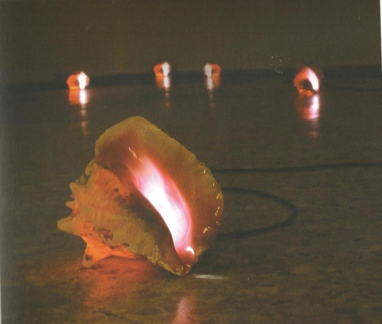 L’année suivante, en 2009, Conch-on (conch shell, strobe light 25 x 20 x 15 cm) associe une source lumineuse au coquillage. A la première triennale de République Dominicaine, Blue Curry présente une installation de plusieurs conques lumineuses.