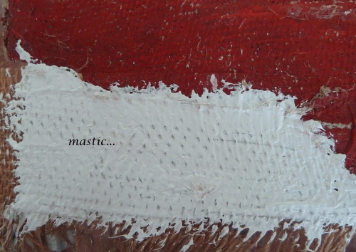 Le contreplaqué marine attaqué lui aussi par les insectes a été progressivement éliminé par défeuillage manuel, au ciseau à bois avant un ponçage minutieux de la dernière couche de bois , support de la toile peinte qui elle sera conservée.