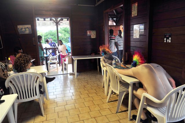 Par ailleurs, dans la performance, la notion de « réel » est en question grâce à la présence concrète de l’artiste et à la focalisation sur son corps. Lorsque « Tonton », le propriétaire du Stardust café, focalise sur nos deux corps qu’il a vu ( en performance) sur le parvis de l’église le matin même et nous revoit l’après-midi, attablés dans son bar, il affirme que « ce sont des Saints que le prêtre a mis dehors pendant la messe et que le Bon Dieu me les envoie là maintenant ». Il nous intègre dans son réel merveilleux et nous accueille très généreusement ; nous prend littéralement en charge en nous offrant à boire, en nous faisant boire et en nous raccompagnant. Ce réel merveilleux dans lequel il nous plonge, nous autorise à croire que nous réinventons à travers nos corps, nos postures performatives, du mythe Caribéen et c’est notre but.