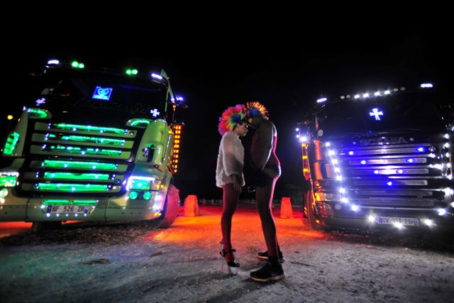 Plus précisément les Titans sont des camions décorés par les soins des camionneurs ; ces mêmes camionneurs empruntant un vocabulaire plastique et esthétique totalement punk pour décorer leurs camions : les croix, les crânes, les couleurs flash acidulées, la lumière forte. ça nous plonge aussi dans un univers pop manga et quand ces camions sont en train de rouler la nuit sur les routes de Guadeloupe, ils dégagent un sentiment de puissance ; ils font peur. Ils sont hors norme, à la limite du monde fantastique.