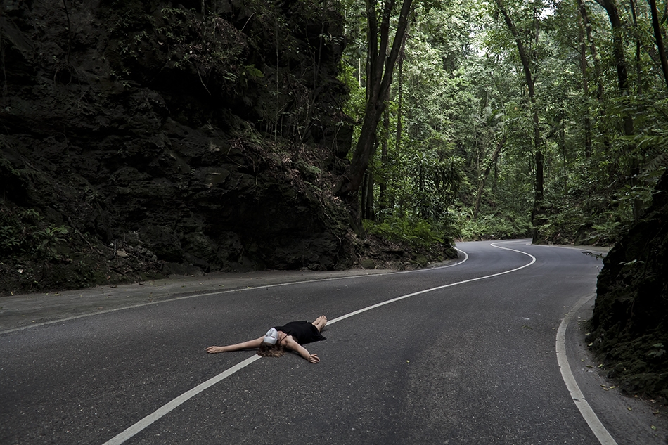 La série Whitey d’Olivia Mc Gilchrist capte son double masqué au sein de divers contextes naturels jamaïcains. Originaire de la Caraïbe mais élevée en France et au Royaume – Uni, la photographe et son avatar tentent de se réapproprier leur terre natale et leur identité. Withey, alter ego photographique de l’auteur a pris vie en chair et en os en 2012, lors d’une performance à l’occasion de la présentation d’une revue.