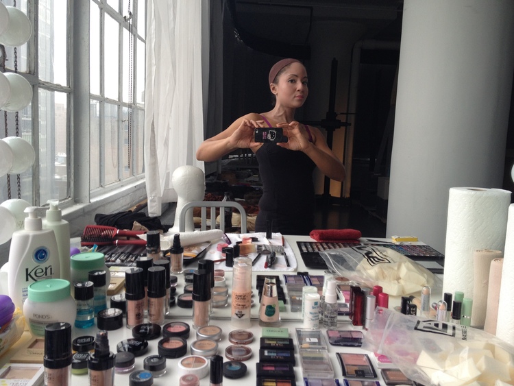 en image à la une : Stacey Tyrell en train de se préparer pour une prise de vue de Bakra Build