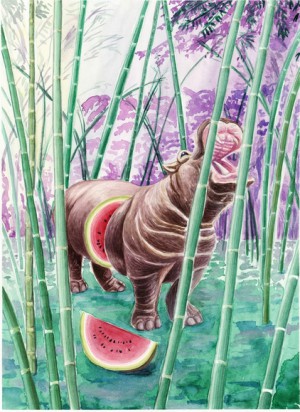 Like an itinerant Ulysses, Jérémie Paul has worked with several artistic genres: expressionism; surrealism; pop art; satirical drawings; cartoons; icons from several civilisations. Various techniques such as installation, china, engraving, painting and drawing are part of his repartee. However the colour saturation of the lagoon and the fluidity of the islands are mainly from pastels and ink on silk. Whenever Jérémie Paul stops on his journey between styles, cultures, techniques and worlds, he will only retain something if it enables him to construct a poetic space as unexpected as an encounter between a watermelon and a hippopotamus, a condor and a cap.