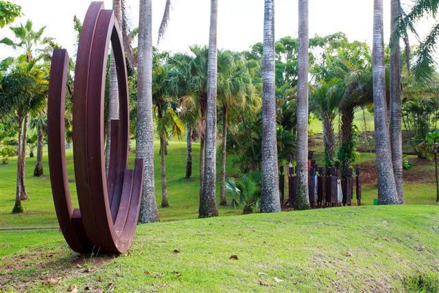 Au Premier plan, Bernar Venet 218.5° Arc x 4 Acier Corten 370 x 378 x 64 cm 2000 © Fondation Clément