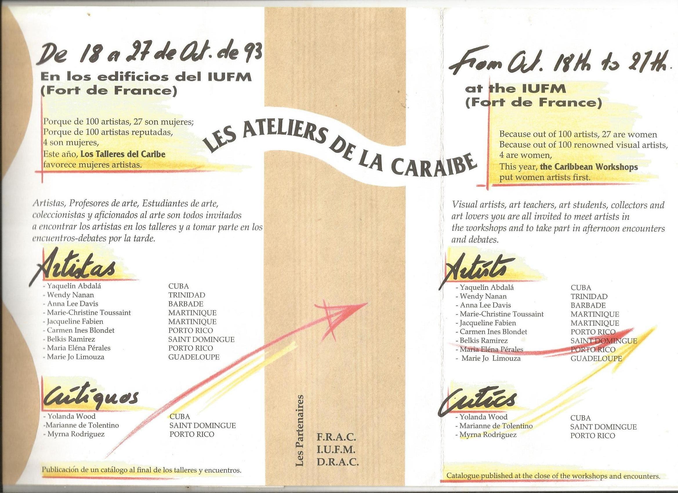 Quinze artistes sur quarante – cinq-33,3%– qui sont directement liés à la Martinique, soit par leur naissance, soit par un choix de vie. y a donc 1/3 d’artistes locaux représentés dans la collection du Frac Martinique ; il s’agit d’un pourcentage important, exceptionnel même comparé aux collections des autres Frac. Pour la Martinique, entre autres, Ernest Breleur, Serge Goudin Thebia, Serge Hélénon, Alex Burke, Jacqueline Fabien, Marc Latamie et pour la Caraïbe, entre autres, Tony Capellan, Vicente Pimentel, Ralph Allen, Onofre Frias, José Garcia Cordero, Ismaël Mundaray, Michel Rovelas .