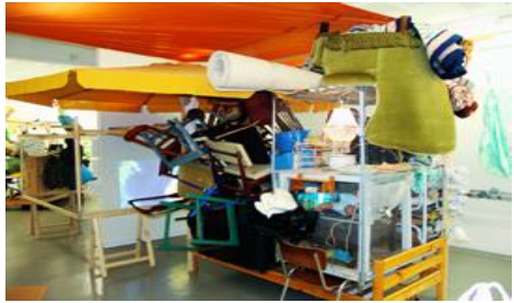 L’artiste réunit dans cette installation une série d’objets quotidiens, meubles, appareils domestiques, entassés comme dans un déplacement de migrants ou comme pour former des barricades dans les rues, ou encore comme on peut voir parfois sur des autels du vaudou, de la santeria, ou du candomblé. Une pointe d’ironie perce dans l’accumulation de meubles IKEA, icones de la culture occidentale, le tout mélangé à des souvenirs pour touristes et des répliques de saints catholiques. Le côté brut de son bric-à-brac est très contemporain et propose une alternative à l’exotisme naïf et coloré souvent attendu de l’art caribéen.