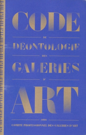 Le comité professionnel des galeries d’art a publié en début 2016 le code de déontologie des galeries.