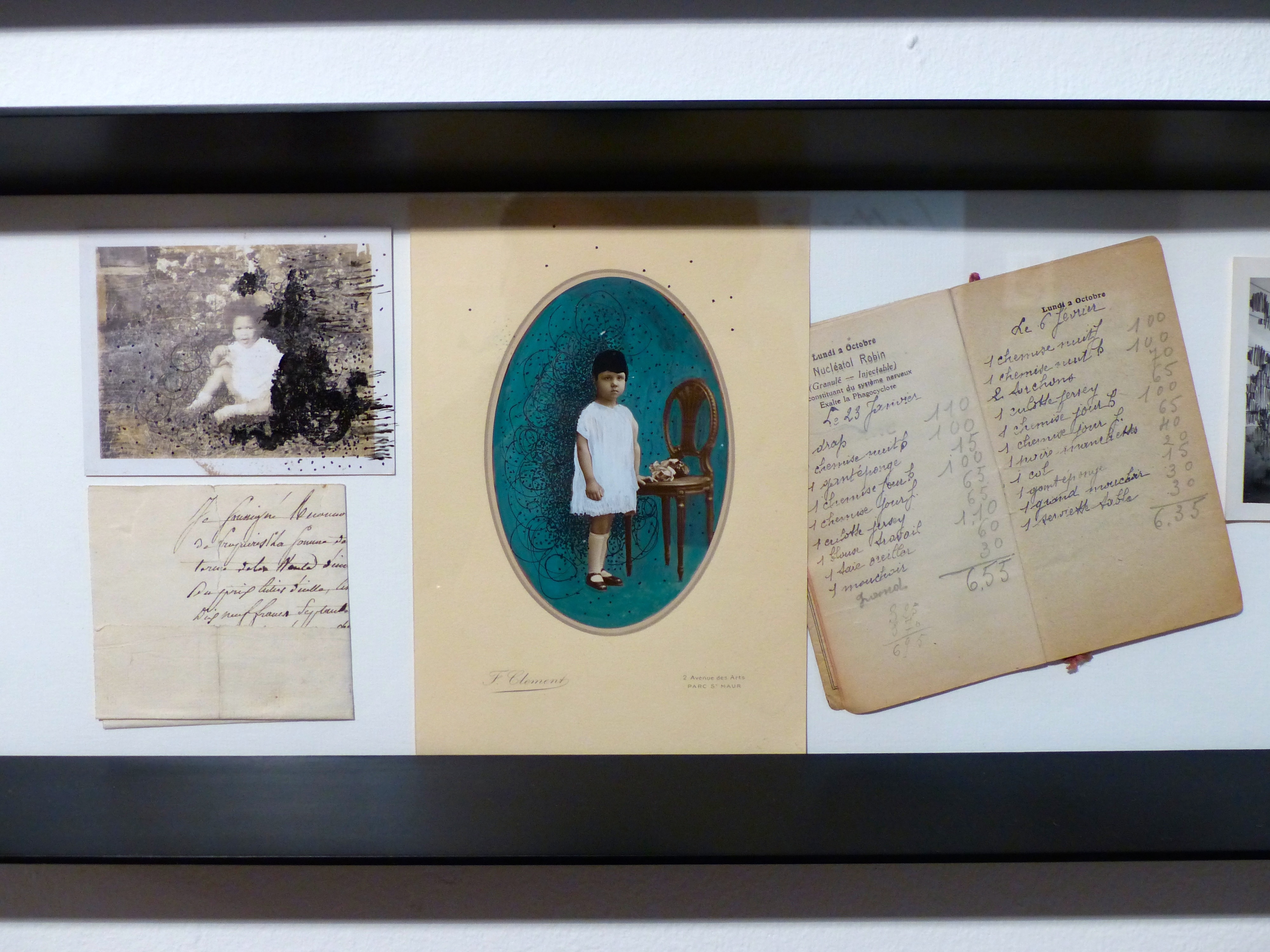 La mémoire et le temps sont au cœur de la démarche artistique d’Agnès Brézephin. Les matériaux, boutons, plumes, fleurs en tissu, dentelle, anciennes photos de famille qu’elle marie dans ses créations proviennent de l’atelier de ses grands – parents. Elle leur redonne vie dans ses installations contemporaines. C’est un hommage aux voix chères qui se sont tues. Celle de sa grand – mère , celle de Suzanne Césaire à qui est dédiée cette exposition « Lettre à Suzanne » , celles de toutes les femmes « que la vie ne fait pas passer par quatre chemins » (1).