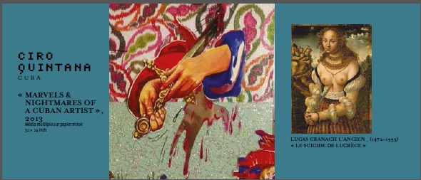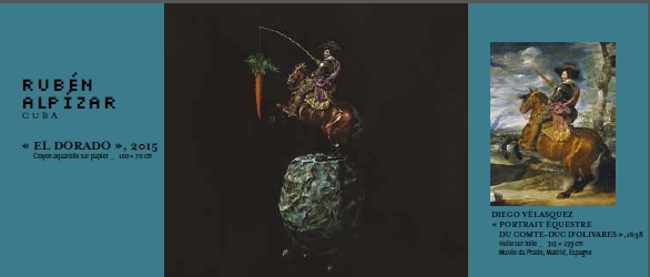 These appropriations, be it in homage or derision, create a dialogue between the artists through the decades or centuries whilst making the artist consider and question their own work. This is true of the remixes by Ciro Art and Ruben Alpizar. The painting is the subject of their work. Appropriation and iconographic recycling are a constant in this scholarly art form. Ciro Art creates an exhilarating mosaic of fragments borrowed from paintings and sculptures from bygone centuries and contemporary features such as cartoons, ads and crime fiction often bordering on kitsch. Ruben Alpizar has a classic style that elevates the choice of tools, pencil or watercolour on paper.