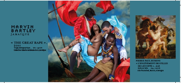 In his photographic reconstructions of pieces by past masters such as Rubens, Botticelli and Delacroix, Marvin Bartley replaces European characters with models from the Antilles to criticise the dominant cultural Eurocentrism whilst addressing contemporary Jamaican issues: religious faith, the close relationship between a dark or light skin and climbing the social ladder.