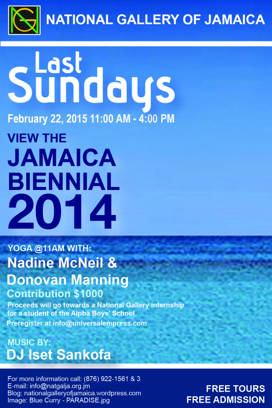 Concerning the NGJ we are now preparing an important exhibition, Kingston, about the relationships between the Jamaican capital and the artistic developments. And another major project is the upcoming Jamaica Biennial 2016, which we continue to develop along the lines we started in 2014.