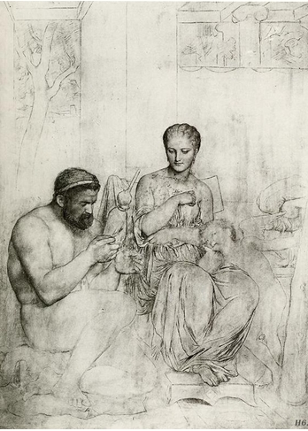 Charles Gleyre , dessin préparatoire Hercule aux pieds d’Omphale