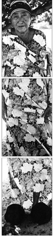 J’ai développé dans plusieurs de mes séries une vision du portrait par le biais de la fragmentation. Dans certains cas cette approche agrandit le modèle comme dans Totems à la frontière, portraits en pied de femmes indiennes arawak de la Péninsule de la Guajira du Venezuela (prises de face, en cadrages serrés) cherchent à révéler leur grandeur et leur force.