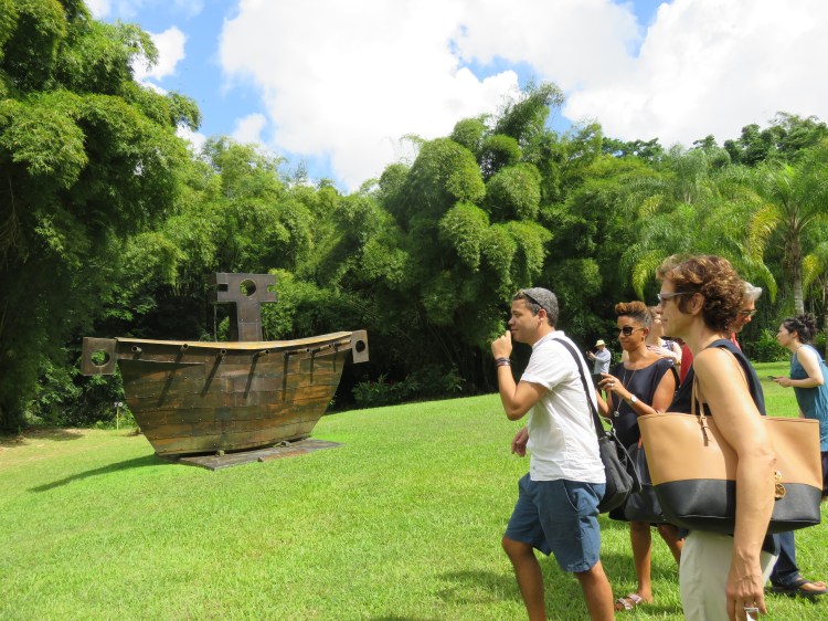 Devant la Vision des Vaincus de Victor Anicet dans les jardins de l’Habitation Saint – Etienne