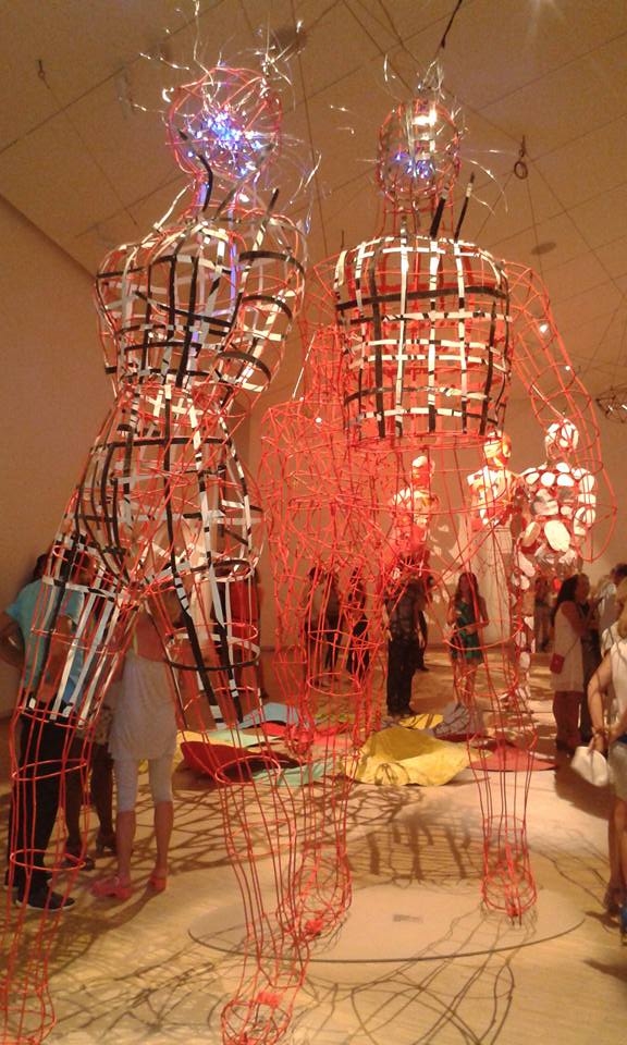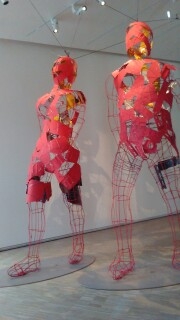 Getting out from the exclusive uniqueness, such could be the purpose of the couple Fleur Fleur (Flower flower). The Flower flower couple, whose body is singularized by a wire armature made of copper pipes painted red, creates the impression that their skeleton is a venous network; coupled with nature Flower flower indicates creation.