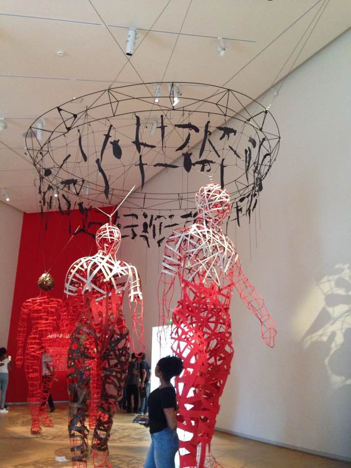 The last couple, Connected (original title in English), connects us to the present, to the future and to the past but also to the world. Each one of the sculptures of the installation could stand up by itself. They are nevertheless connected to the ceiling and to each other by wiring, which has the dual purpose of ensuring the safety of the visitors, while making clear the interconnection between the elements of the narrative; a connection that goes beyond the frame of the island and of the exhibition. Hervé’s work resonates with that of other artists working around the body and the memory, the multiple and the unique, the singular and the universal.