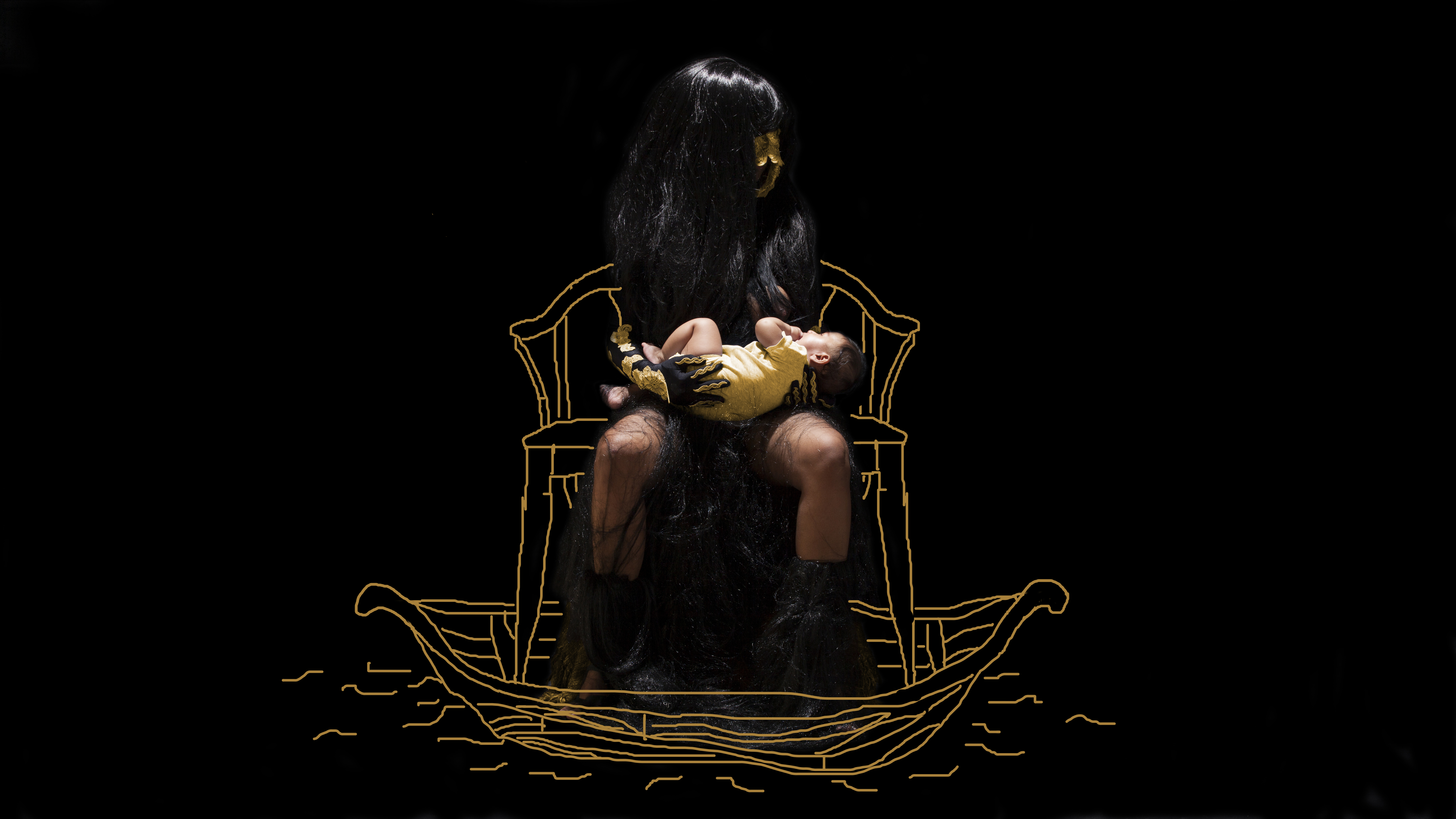 Le personnage “Vagina”, visible dans mes travaux antérieurs “Vagina, Jyoti Singh Pandey” 2015 est présent dans ce récent travail, mais sous une allure différente, dans un autre contexte. Ici cette femme n’est plus une prédatrice mais une protectrice envers sa progéniture. Ce nouveau personnage est habillé de cheveux et d’un masque doré qui lui confèrent une allure bestiale et féminine à la fois. Le costume a été réalisé en cheveux synthétiques cousus sur une robe d’allaitement, d’un collier, de guêtres, d’un masque et d’une perruque , j’ai mis un mois à le confectionner, je souhaitais une esthétique très particulière mêlant féminité, monstruosité et sécurité à la fois. L’esthétique sauvage des Wilder Mann photographiés par Charles Fréger m’ont intéressée. Ces drôles de personnages poilus de la tête aux pieds incarnant la figure du sauvage, de personnages mythiques, de surhommes m’intéressaient et correspondaient à certains aspects de ma nouvelle identité de mère/femme.