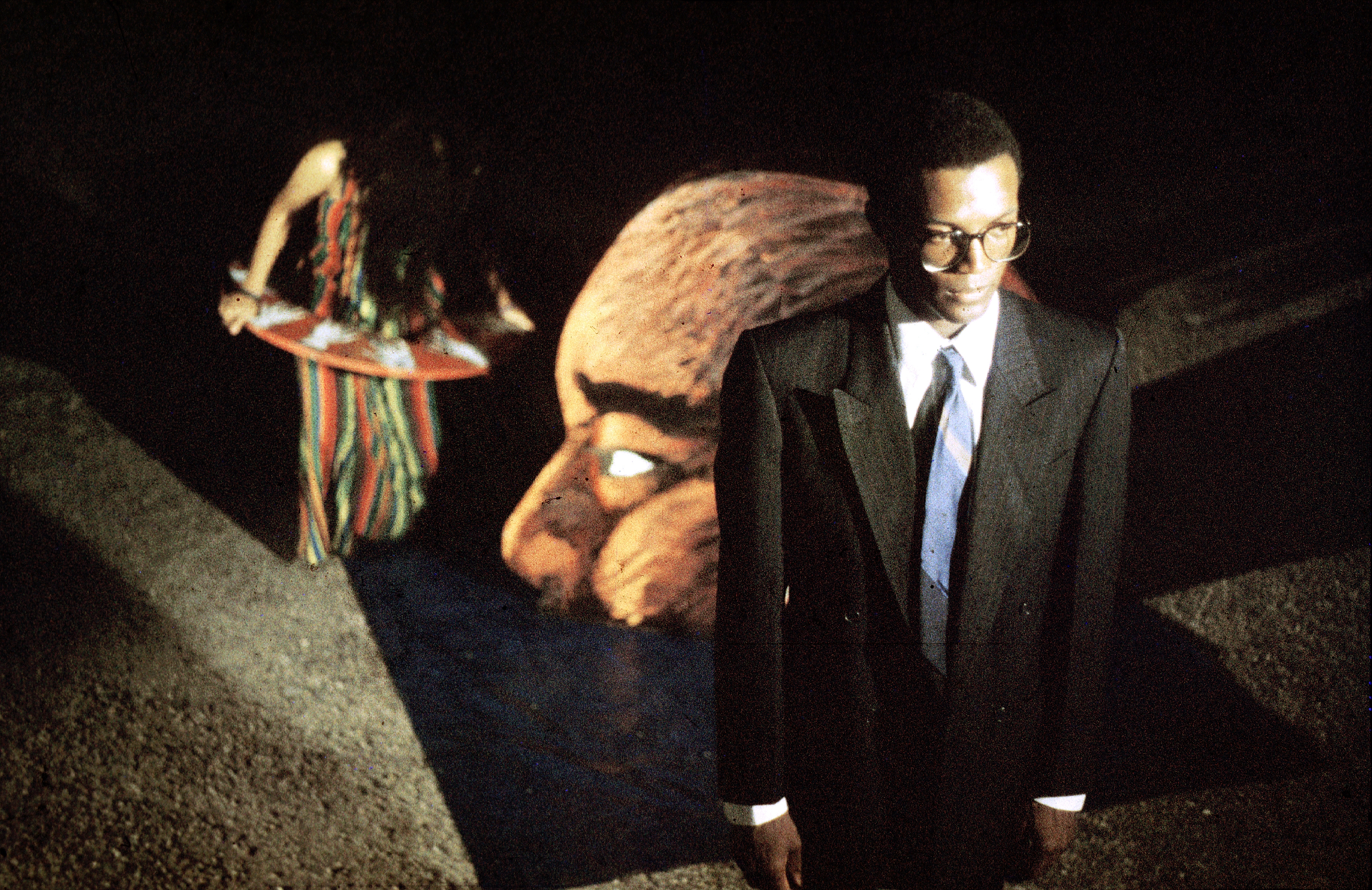 Selon l’artiste, la coprésence visuelle de la lumière et de l’obscurité dans la vidéo, symbolise aussi l’inconscient des personnages : cette performance « est comme un mineur (…) dans le tunnel de notre conscience »[21]. Ce travail peut aussi être interprété comme un lapsus freudien sur la scène d’un « wrestling social et artistique »[22] entre les tensions et les attentes de la post-indépendance.