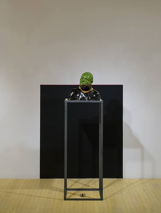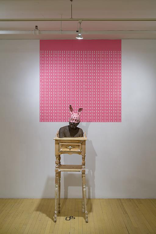 Confronté à l’ensemble des œuvres de l’exposition  « Egoportrait ou l’errance des oiseaux » d’Eddy Firmin, on tente un inventaire à la Prévert : deux perches à selfies, trois lapins, quatre carcans, cinq masques, vingt logos, quarante béquilles tordues  donc inefficaces…Comment découvrir le fil d’Ariane dans les méandres de la posture conceptuelle de l’artiste et le labyrinthe de l’art contemporain ?