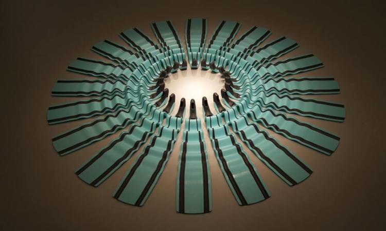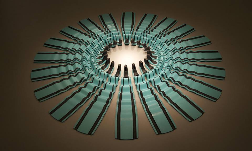 Ne retrouve – t- on pas parfois, dans les œuvres d’Eddy Firmin, le ton critique et ironique du collectif cubain Los Carpinteros dénonçant le système politiquement et culturellement restrictif de leur pays au moyen, entre autres,  d’objets quotidiens détournés. Comment ne pas  percevoir, comme le relevait Matilde dos Santos,  un écho formel et conceptuel de l’installation d’Eddy Firmin, une accumulation circulaire de béquilles courbes donc impuissantes à soutenir avec Patas de ranas turquesas o negras (1) de Los Carpinteros ?  Même principe accumulatif, même forme circulaire, même impuissance des objets,  intention critique similaire, beauté formelle partagée. Pour Eddy Firmin, cette rosace de béquilles, c’est l’évocation d’un peuple d’esclaves au corps et  à l’esprit brisé. C’est la poésie du cercle et du groupement collectif  inventé par l’esclave, la ronde que l’on retrouve  dans les Gwoka, bélè, bomba, la solidarité pour dépasser un contexte défavorable.  Comme le suggère le critique d’art Gérald Alexis les béquilles, certes déformées donc inutilisables, de par leur disposition en cercle, s’opposent à la dispersion et se transforment en un réseau de vecteurs de force dirigés vers le centre où se trouve l’artiste.