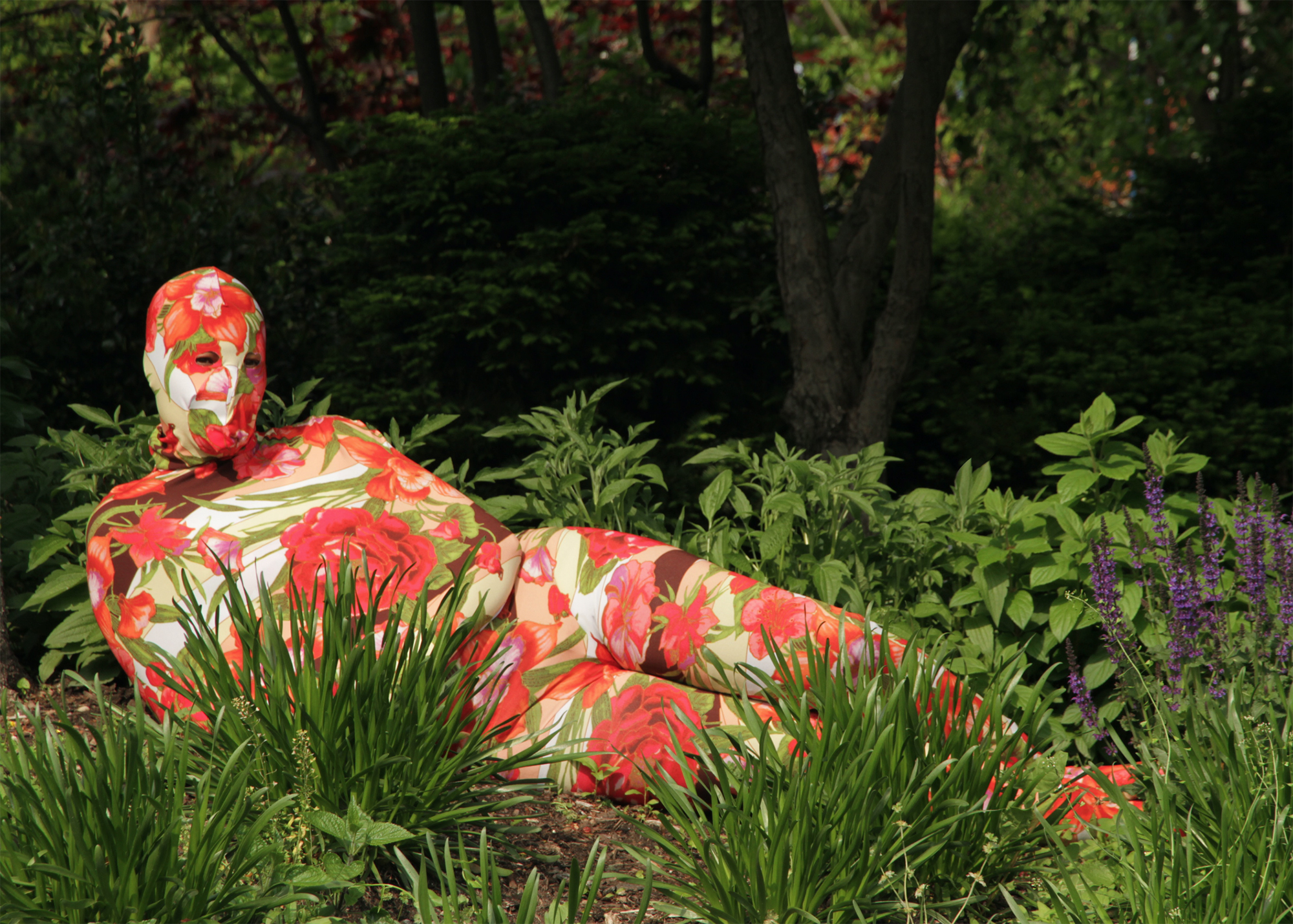 Dans le Bronx, au Rossbach Monocot Garden, dans le cadre du projet, Call & Response, des performers habillés des tenues aux motifs végétaux tropicaux, dessinées par Joiri qu’elle désigne par le terme Containers, déambulent, s’arrêtent, prennent la pose alors que les spectateurs perçoivent un texte diffusé au sein même de la nature.