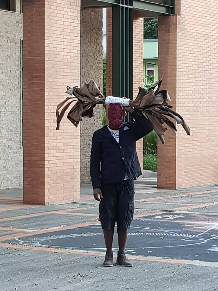 Etrangère en Martinique moi-même, je l’ai perçu il y a quelques années comme un outsider dans son propre pays. En effet, Habdaphaï s’est toujours vu et a toujours été en dehors de tout groupe, école, courant, tout en impulsant divers mouvements associatifs, et en étant particulièrement populaire auprès du public en général, un peu en raison des manifestations qu’il a organisées par le passé. Pourquoi outsider alors? Peut être car il vient d’« ailleurs », c’est à dire de la danse et non pas d’une école d’arts visuels … Ou parce qu’il a un langage profondément créolophone, et tend à parler français par images, prenant souvent un mot pour un autre, usant et abusant de synecdoques ou métonymies, niant à chaque phrase le caractère linéaire de la langue française, à laquelle il lui arrive de faire des enfants dans le dos.[ii] Ce qui est certain c’est que son langage, souvent créateur, n’a pas toujours été compris ou accepté. Mais même lorsque sa parole hors norme était disqualifiée, l’artiste a continué de s’exprimer. J’aime cet entêtement, j’y vois la nécessité de l’artiste.