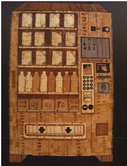 Une autre œuvre aborde d’une façon très significative cette problématique liée aux migrations et à l’immigration, aux espaces de circulation, de vas-et-viens, de déracinements, de collisions des cultures et de préoccupations identitaires. Il s’agit de l’œuvre Visa vending machine (Distributeur de visas) crée en 2012.