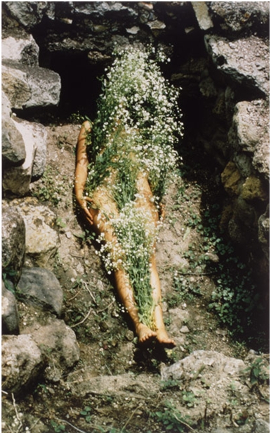 Ana Mendieta, est plus connue par ses œuvres intitulées las Siluetas, une série de silhouettes anthropomorphes qu’elle a – à plusieurs reprises – réalisées dans des paysages cubains et mexicains. En insérant sa propre silhouette dans le paysage avec du feu, des pierres, de la végétation ou de la boue (l’œuvre : Arbol de la vida), et d’autres matériaux naturels, Ana Mendieta a créé un véhicule métaphorique pour se lier avec la terre : celle qui lui permet de rejoindre son pays qu’elle a été forcée de quitter dans son enfance.