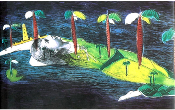 La représentation de l’île et des cartes, de l’exil, des migrations et de la diaspora, fascine de nombreux artistes cubains. Espace clos, isolé de tous côtés par l’eau, l’île est un monde à part. Sa taille, son éloignement du continent et l’importance de son rivage conditionnent son rapport aux autres terres. Évoluant dans une autre dimension de l’espace-temps que les terres continentales, l’île à ainsi sa spécificité. L’isolement de l’île crée des conditions particulières : les hommes des îles, vivants dans un espace restreint, vont donner un nouveau sens à leur monde. C’est en ces termes que nous pouvons évoquer le travail de l’artiste cubaine, Sandra Ramos. Une artiste qui explore de multiples médiums – la peinture, la sérigraphie, la gravure, les pratiques de l’installation, la performance et la vidéo. Dans ses œuvres, l’île renvoie à l’exil, au traumatisme de l’abandon, à la rupture des liens familiaux, à la perte de l’enfance, à la solitude propre à la vie des cubains.