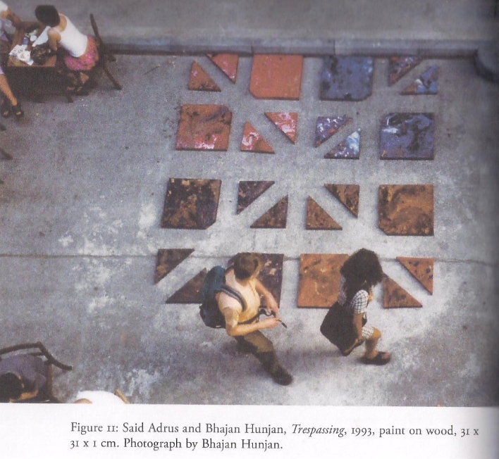 Ce que souligne le texte de Wainwright, c’est que ces artistes varient le medium et les diverses techniques, passant de l’installation, au dessin, à la photographie, à la sculpture et au montage vidéo. C’est un regard qui réécrit avec empathie l’histoire d’une communauté. Avec ses drapeaux, Eddie Chambers traite de l’ethnicité et de l’identité culturelle. Comme d’ailleurs l’œuvre Trespassing (1993) – Intrusion – cette étonnante composition de Said Adrus et Bhajan Hunjan, faite de panneaux en bois formant des drapeaux. Vanley Burke décline le thème de l’ethnicité dans des photographies noir et blanc dévoilant la vie intime d’une communauté et qui n’ont rien du reportage déshumanisant.