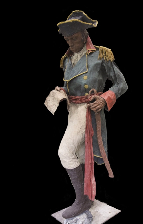 Cette sculpture représente Toussaint Louverture lisant  la constitution du 8 juillet 1801 qu’il rédigea et dans laquelle il déclarait Haïti, son île natale, « première République noire libre ». Sa version en bronze,  de 2, 80 mètres de hauteur et 683 tonnes est installée à la Rochelle devant le musée du Nouveau monde. Le Smithsonian Museum de Washington a acquis une autre version, Tousaint Louverture et la vieille esclave