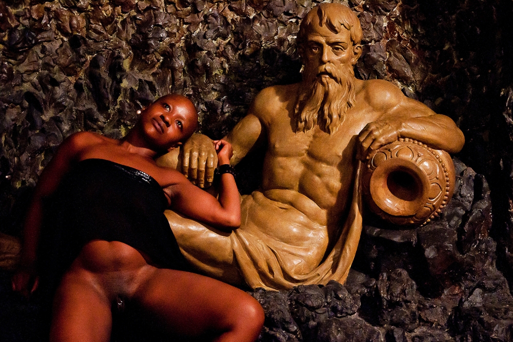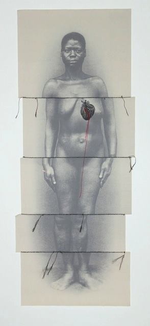 La série Assentamento[ii]  ( 2013)  présente plusieurs images à taille humaine du corps nu d’une femme noire inconnue enregistrée par l’expédition Thayer, menée au Brésil par Louis Agassiz, zoologue suisse-américain en 1865. Louis Agassiz avait commandé au photographe August Stahl des images d’esclaves dont il voulait prouver l’infériorité. Toutefois,  les images de Stahl bien que niant l’humanité des sujets par leur nudité, restent très belles et très puissantes surement par le regard sans détour avec lequel les sujets fixent la caméra et sont les toutes premières photographies de noirs brésiliens .
