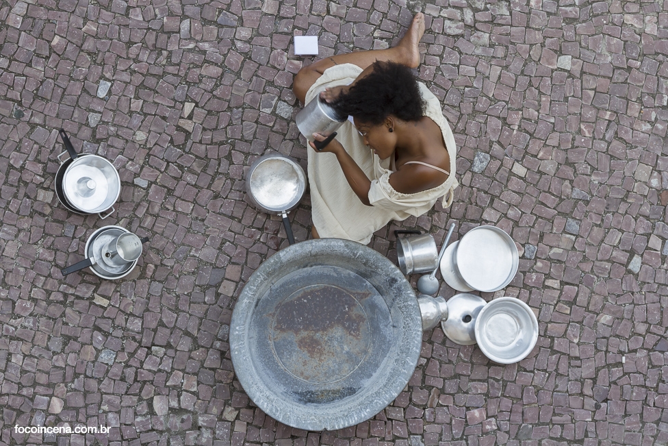 Priscila Rezende (Belo Horizonte,1985) est diplômée de l’école d’art visuels Guignard de l’université de Minas Gerais. En performance Priscila travaille souvent de façon littérale, plaçant son corps de manière à déranger le spectateur et le confronter aux stéréotypes dont est objet la femme noire dans la société brésilienne. Partant de son expérience intime, l’artiste s’adresse au public sans artifice.  La performance . Bombril (2010-2018) reprend le nom d’une marque et d’un produit de nettoyage (bombril), l’équivalent du jex. « Bombril » est aussi un mot péjoratif fréquemment utilisé pour faire référence aux cheveux crépus. Vêtue comme une esclave ou une servante Priscila s’installe dans un lieu public et frotte ses propres cheveux savonnés sur un lot de casseroles et autres ustensiles métalliques, questionnant l’infériorisation à laquelle le noir est soumis en raison de son esthétique. Cette performance participe de la stratégie qui consiste à prendre un mot ou une position péjorative à son compte, confrontant le passant, le spectateur, à son propre discours discriminatoire, l’obligeant à faire face. Sa sincérité dérange et suscite toujours des répercussions.
