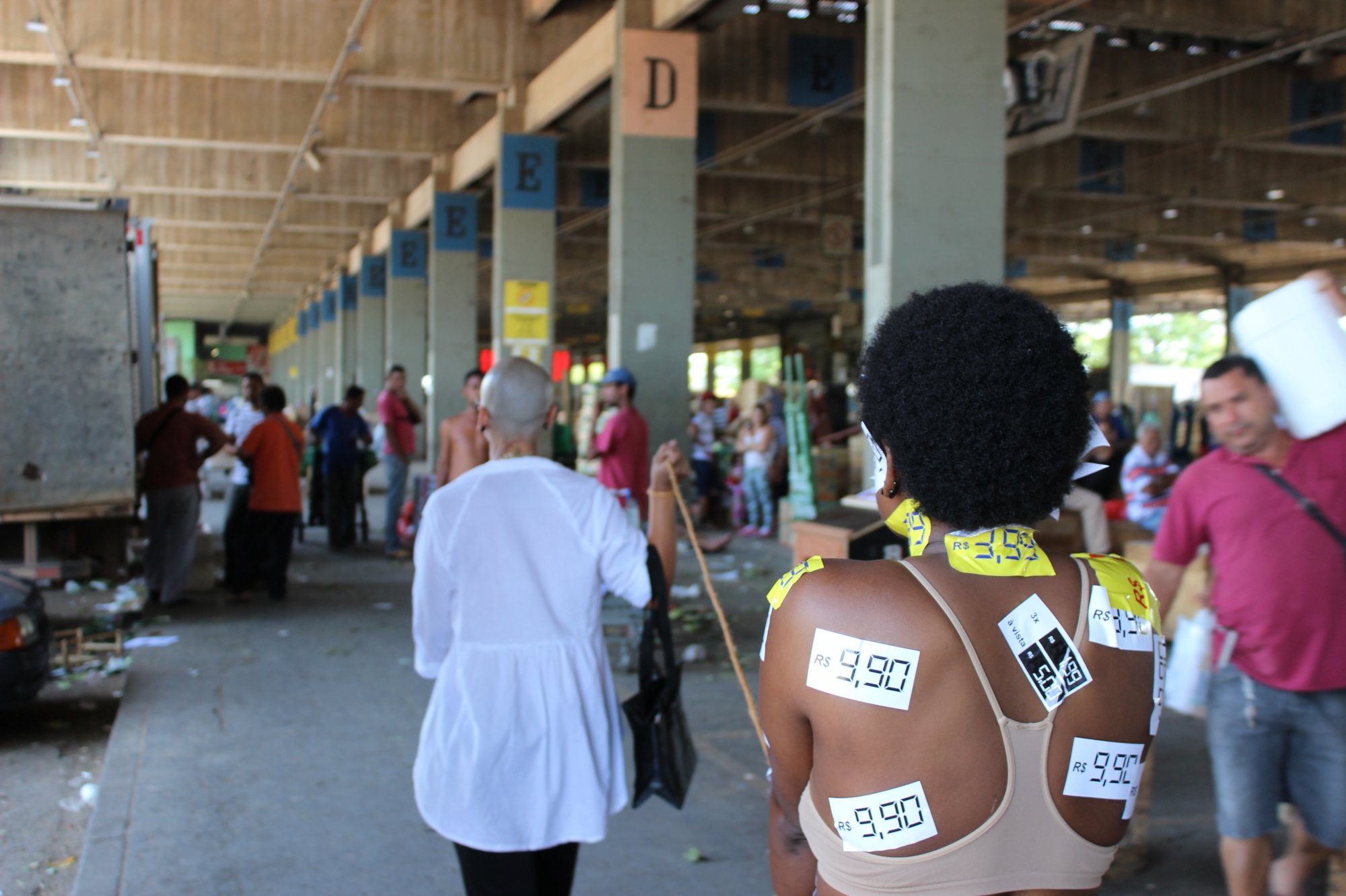 En 2014, Priscila Rezende a performé Barganha (marchandage) au Centre d’approvisionnement de Belo Horizonte. Trainée par une corde attachée à ses poignées dans un lieu de vente fréquenté exclusivement par les grossistes (vendeurs et acheteurs)  et des manutentionnaires. Priscila est mise en vente par  une femme très claire. Tout en avançant la femme annonce l’article, en même temps qu’elle colle sur le corps de l’artiste des étiquettes avec des prix dérisoires qui diminuent encore et encore. L’action fait référence à une chanson de 2002 : A carne mais barata do mercado é a carne negra. (la chair la moins chère du marché est la chair noire).  Dans cet univers masculin la presque nudité de l’artiste souligne la manière dont le corps de la femme noire est objectivé sexuellement.