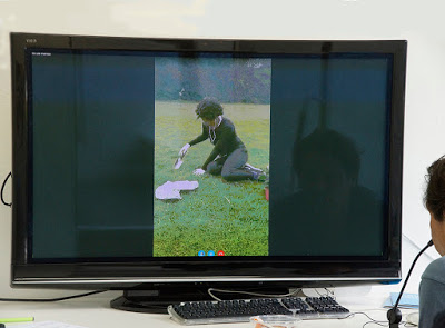 L’image imprimée sur tissu, est découpée et recousue par l’artiste grossièrement, avec des coutures dépareillées, évoquant ainsi le processus de reconstruction de ceux qui « atteignaient un monde totalement inconnu de leur lieu d’origine» . Les asymétries semblent indiquer aussi que cette reconstruction n’est jamais parfaite.