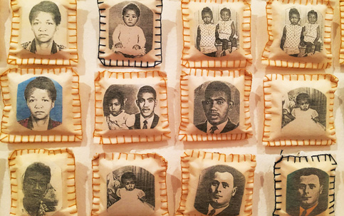Rosana Paulino (São Paulo, 1967) est une figure majeure de l’art contemporain brésilien, spécialement dans la question du noir dans la société et dans l’art brésilien. Rosana est formée par l’Université de São Paulo (USP), avec spécialisation en gravure à Londres en 1998. Elle a été boursière des fondations Ford et Rockefeller et est également docteur par la USP. En 1994, encore pendant sa scolarité, son œuvre Parede da memoria (mur de la mémoire) a été exposée  au Centro Cultural de São Paulo. L’œuvre consiste en une suite de photocopies de photos de sa propre famille. Ces images travaillées comme des petits coussins brodés, mis côte à côte, sont présentées dans une horizontalité qui rappelle peut être la difficulté pour la population afro-descendante de remonter son ascendance. Mais surtout par sa monumentalité l’oeuvre rendait obligatoirement visible une population en général maintenue dans l’invisibilté.