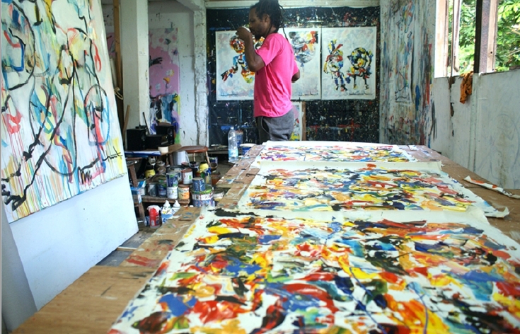 La vitalité expressionniste et le goût du graphe rappellent le Street art, autrefois pratiqué par Hunt.